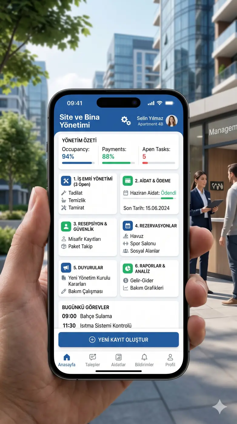 Aidat takibini, arıza çözümünü, toplantı kararlarını ve hukuki süreçleri tek elden yönetiyoruz. Kurumsal kadro, dijital altyapı.